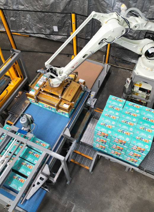 Fully customised designs to accommodate very high SKU counts, full pallet case-accumulation, case stacking and banding, layer forming and unique EOAT options. Built to reduce reliance on human handling of heavy cases, our fruit and produce solutions ensure consistently high throughput, operator safety, and optimised automation efficiency.