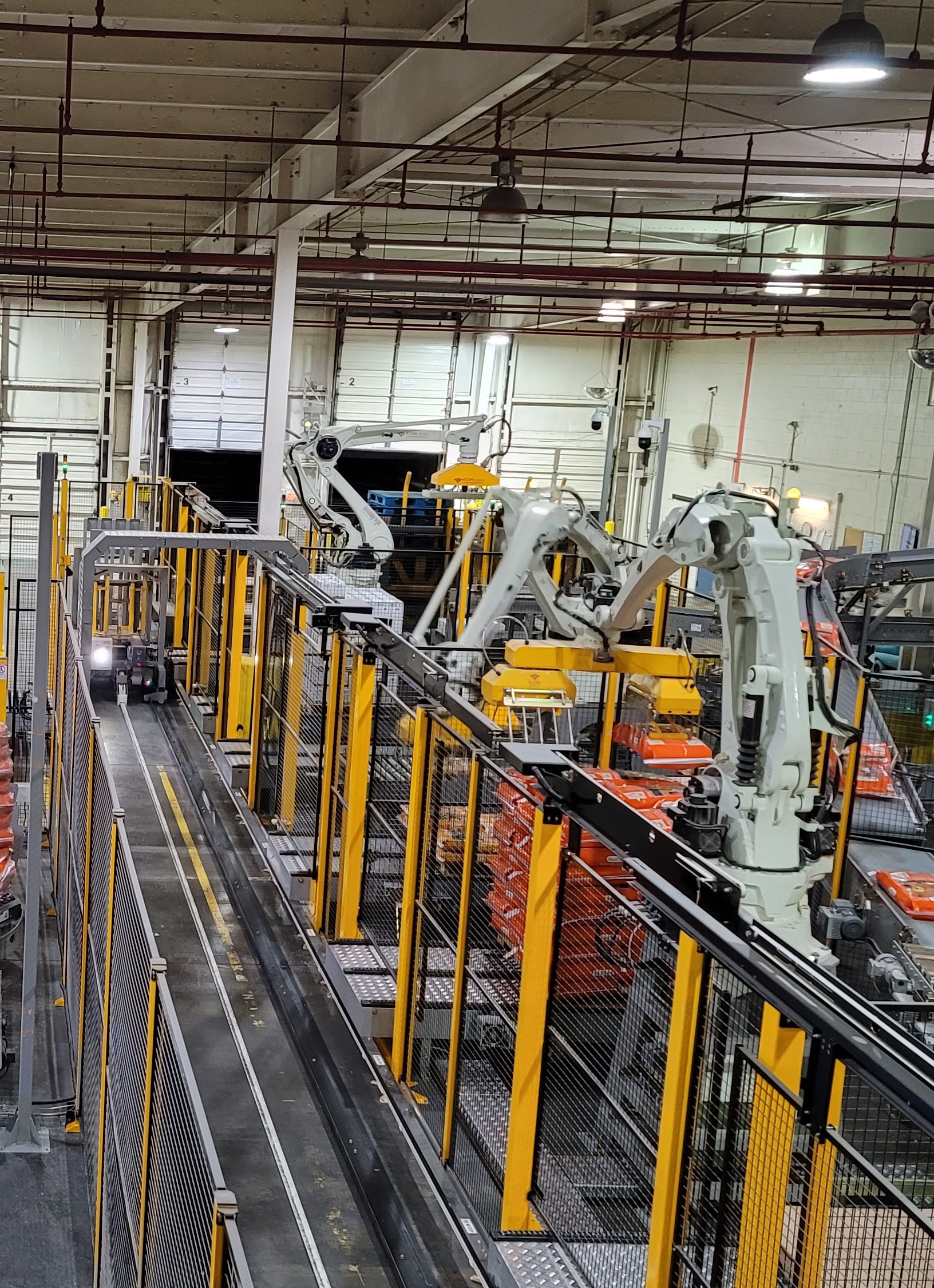 Hiring and keeping employees that were required to handle and stack heavy bags and boxes, day in and day out, was a challenge for GHF. Automating this process was challenging due to the high-production rates and unique package sizes. In addition, some products had to be loaded into totes, which made it difficult to use typical end-of-arm tools in this confined space.